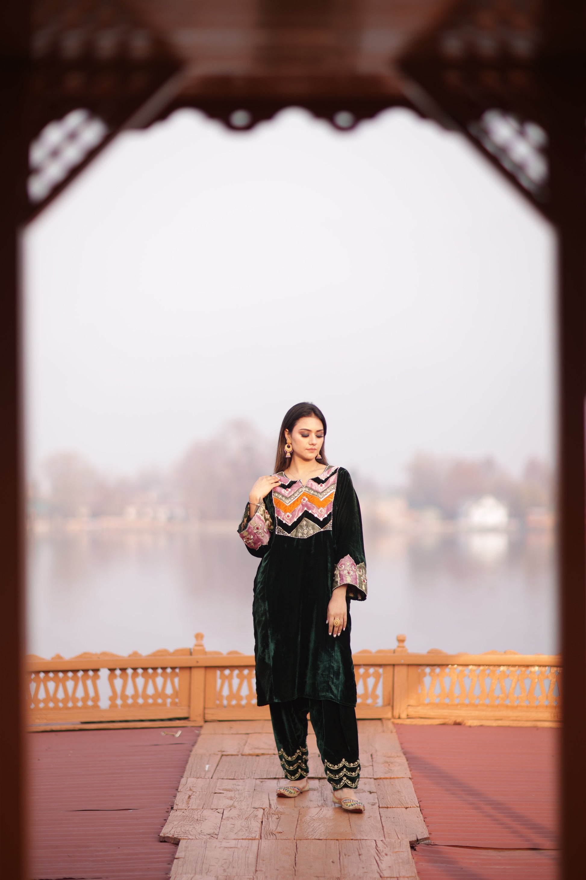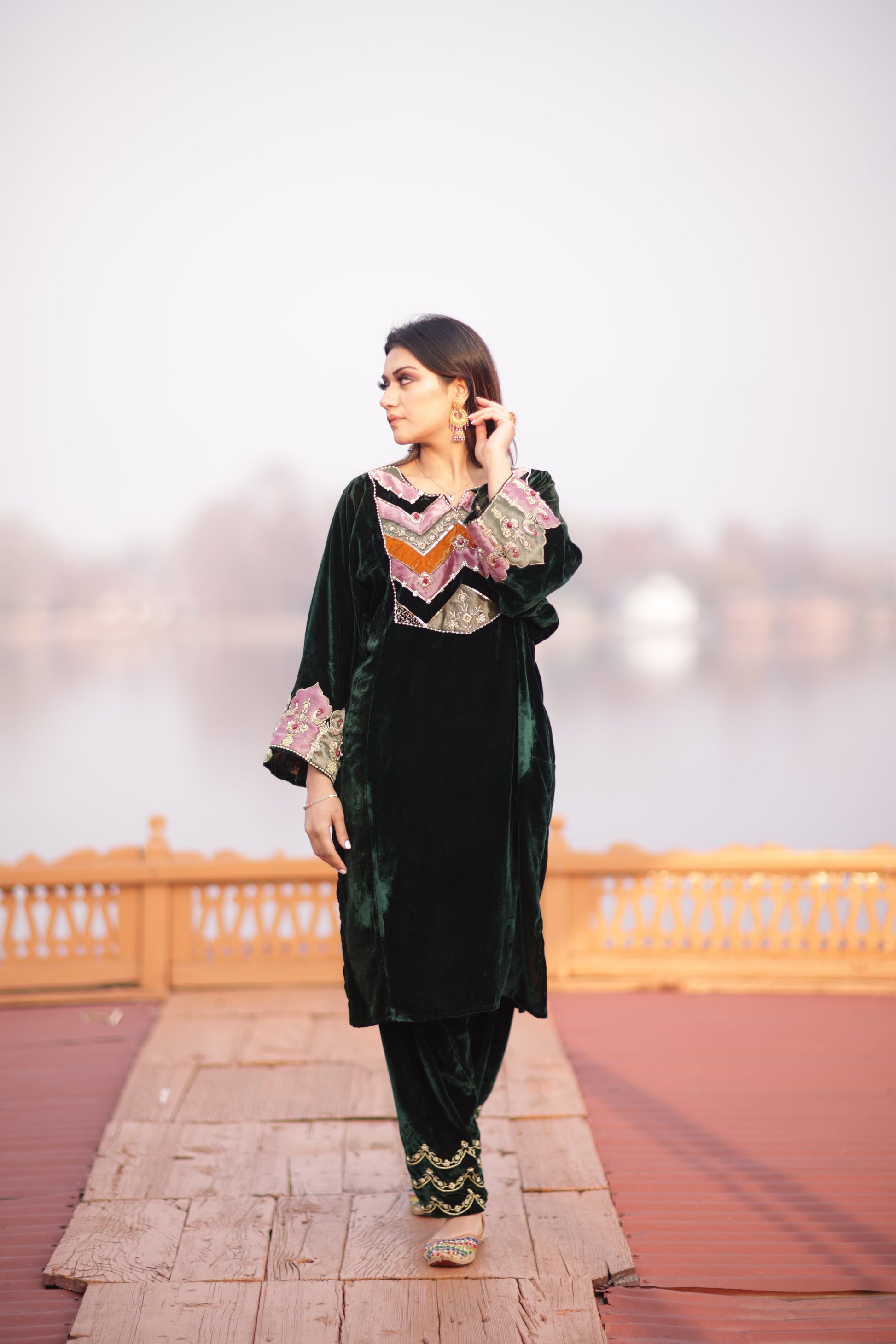 Green Silk Velvet Phiran