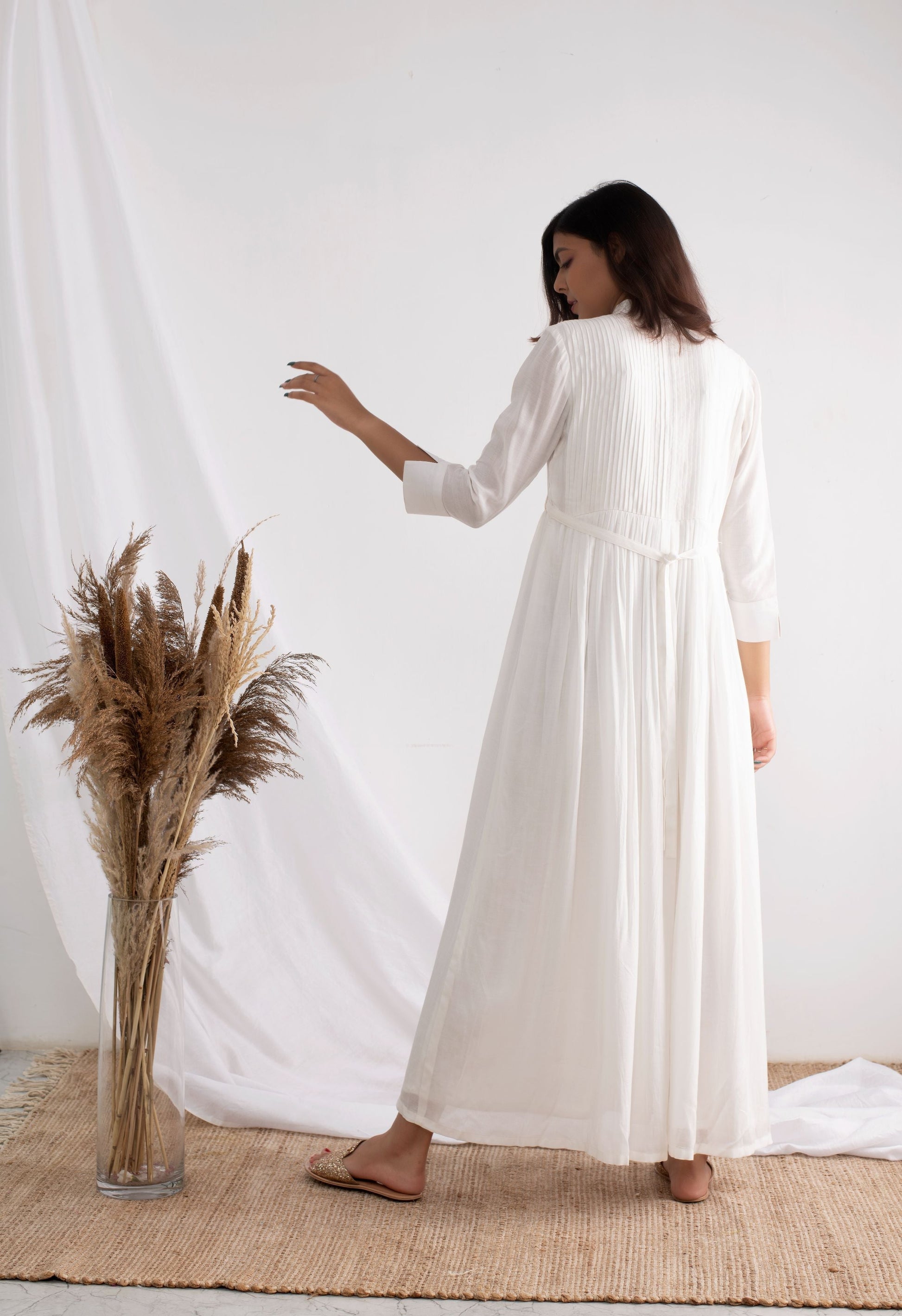 •Delicate Pin Tucks In Front And Back With Drawstring Tie-up On Waist For Fitting.